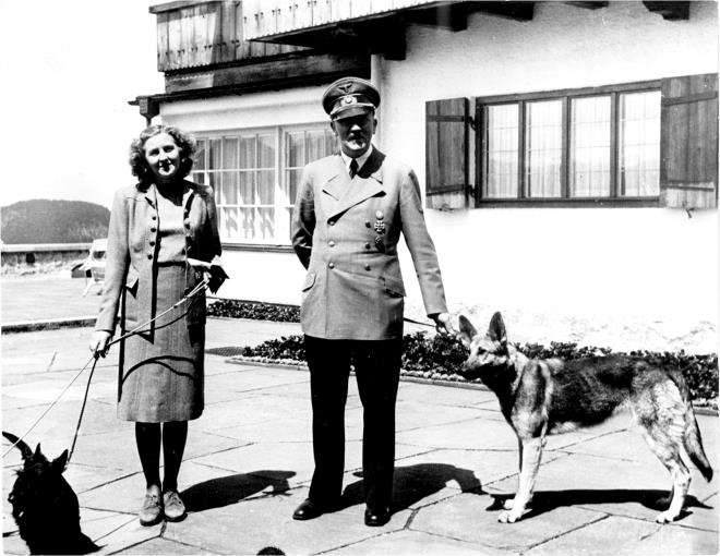 so fond of Eva Braun’s little dogs, the terriers Negus and Stasi, calling them