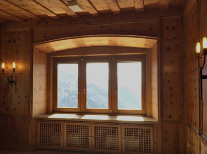 heavy beamed ceilings: a modern day version of the mountain fortress where